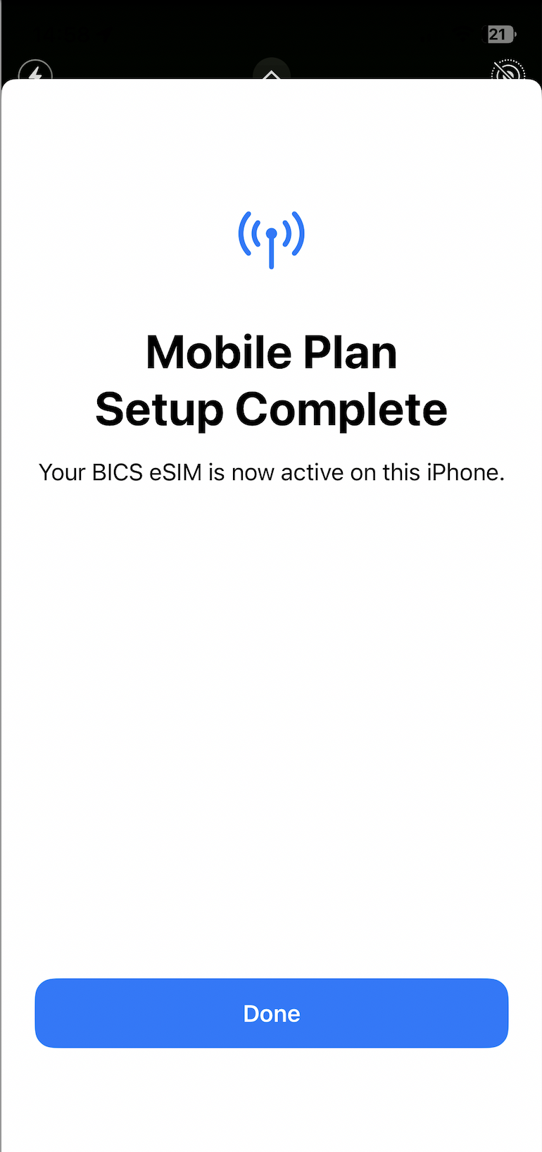 13. The eSIM is now installed and set up.